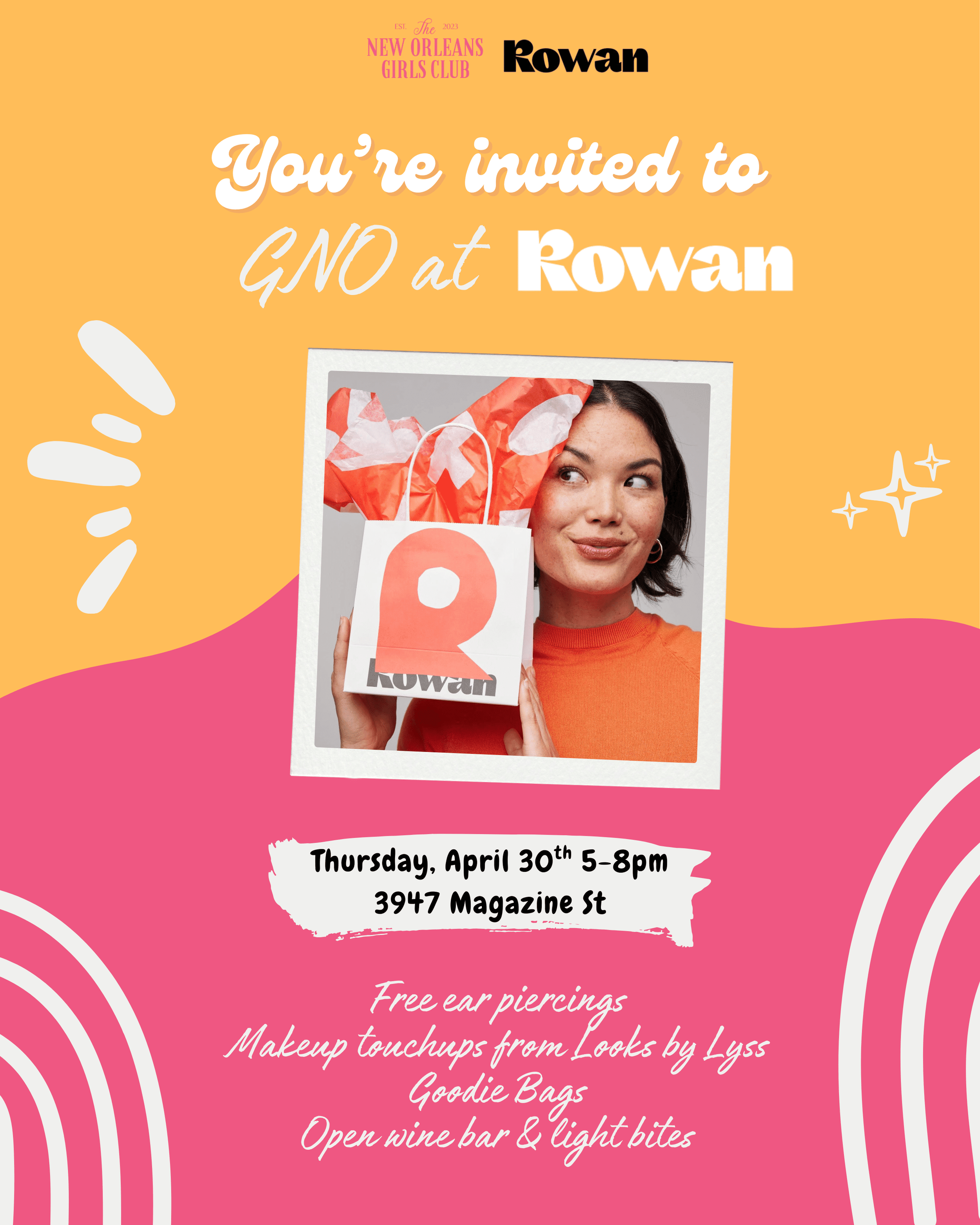 Join us on Thursday April 30th for a GNO party at Rowan! Grab your girls or come solo!