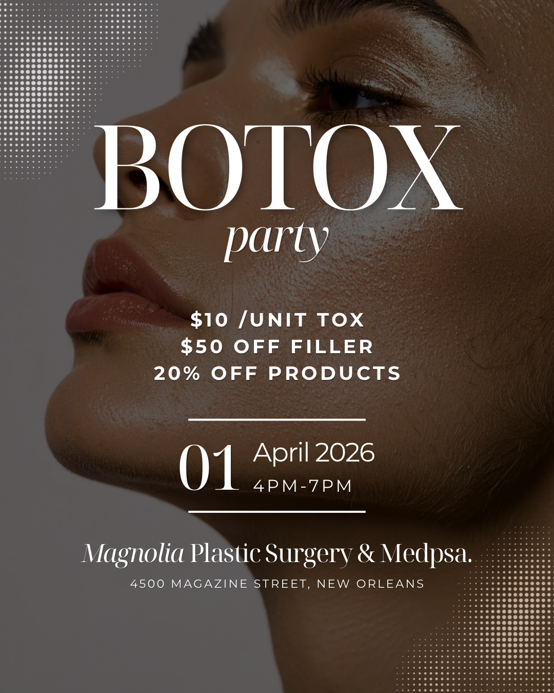 NOGC Member Rachel King is hosting a Botox Party on April 1st between 4pm-7pm at Magnolia Plastic Surgery!