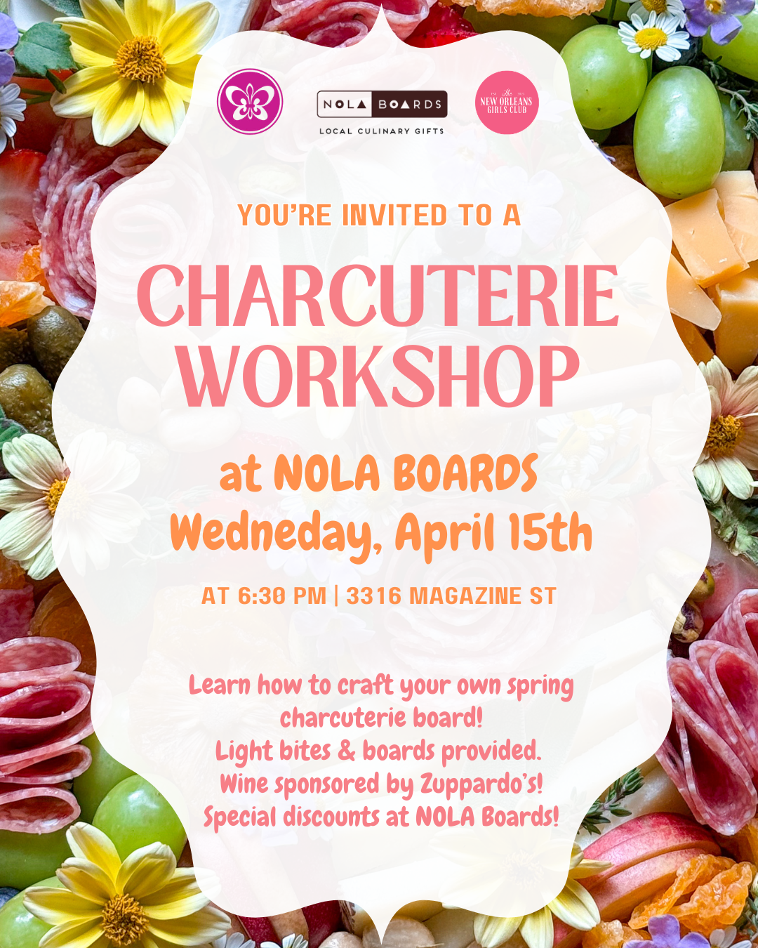 Join us for a festive and hands-on Spring Charcuterie Workshop at NOLA Boards in the heart of New Orleans! In collaboration with Sorrenteaux and the New Orleans Girls Club, this elevated experience brings together local flavor, creativity, and community.